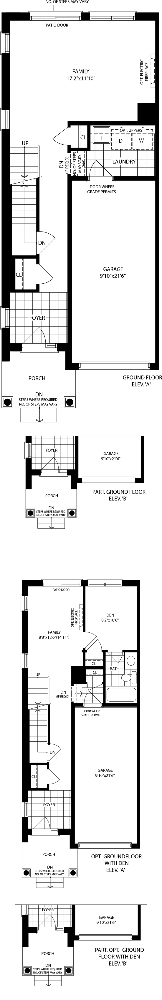 Materials, specifications, and floor plans are subject to change without notice. All house renderings are artist’s conceptions. All floor plans are approximate dimensions. Actual usable floor space may vary from the stated floor area. Number of steps on front elevation may vary depending on grade conditions. E. & O.E