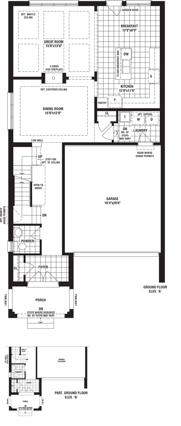 Materials, specifications, and floor plans are subject to change without notice. All house renderings are artist’s conceptions. All floor plans are approximate dimensions. Actual usable floor space may vary from the stated floor area. Number of steps on front elevation may vary depending on grade conditions. E. & O.E