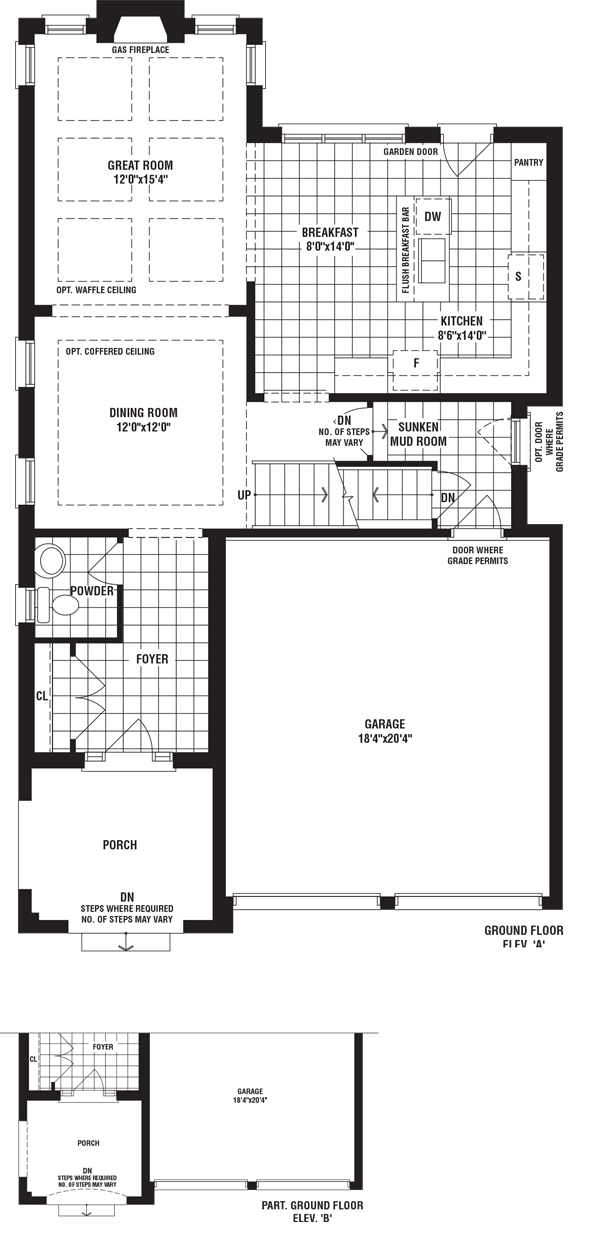 Materials, specifications, and floor plans are subject to change without notice. All house renderings are artist’s conceptions. All floor plans are approximate dimensions. Actual usable floor space may vary from the stated floor area. Number of steps on front elevation may vary depending on grade conditions. E. & O.E