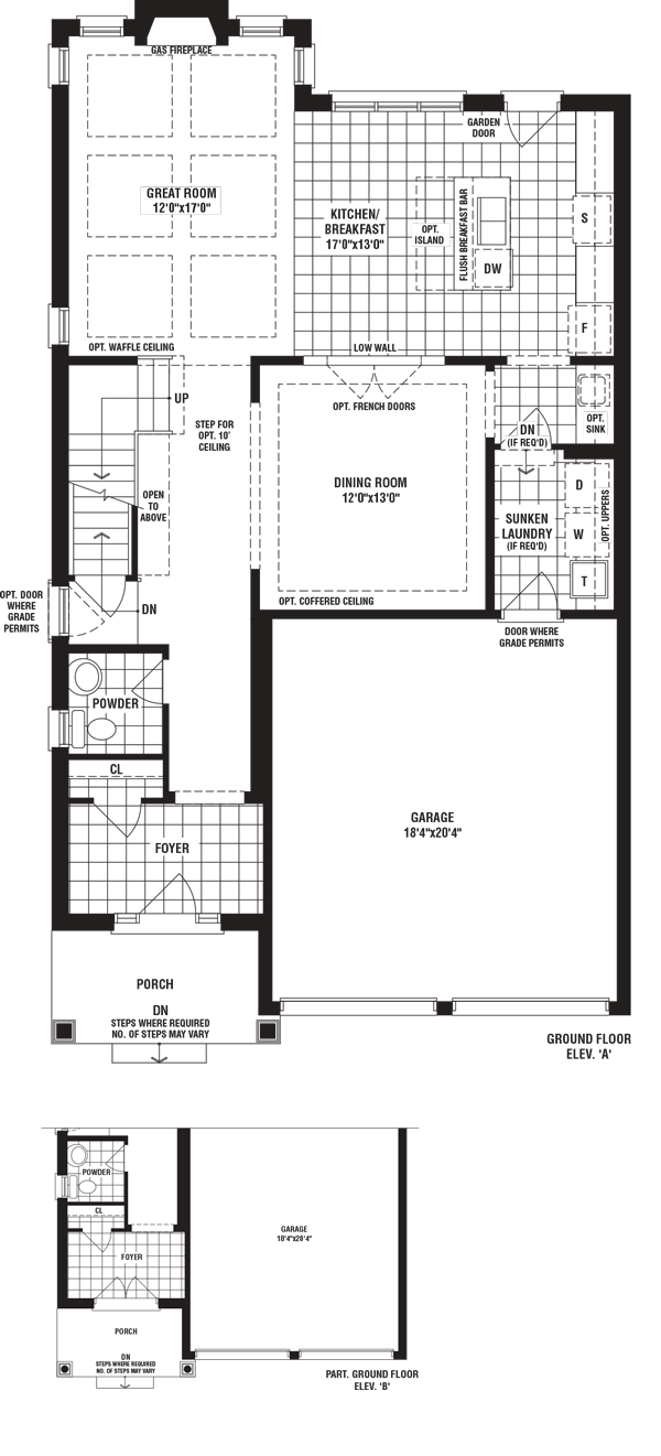 Materials, specifications, and floor plans are subject to change without notice. All house renderings are artist’s conceptions. All floor plans are approximate dimensions. Actual usable floor space may vary from the stated floor area. Number of steps on front elevation may vary depending on grade conditions. E. & O.E