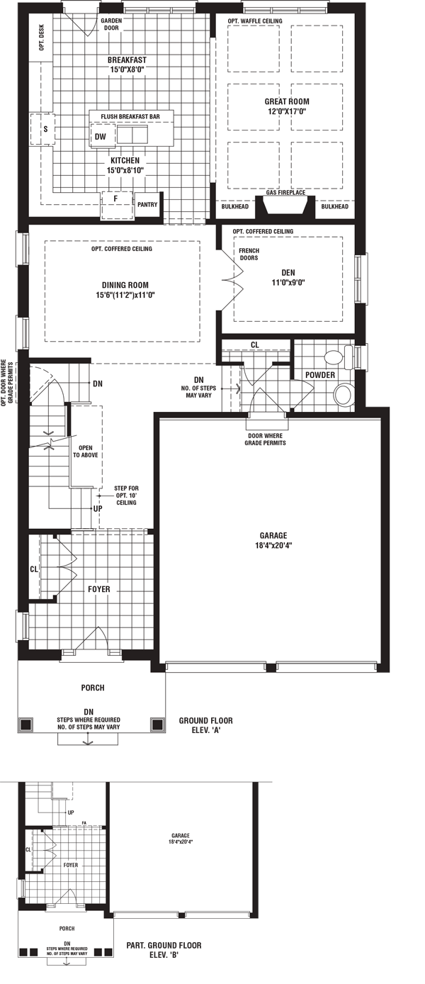 Materials, specifications, and floor plans are subject to change without notice. All house renderings are artist’s conceptions. All floor plans are approximate dimensions. Actual usable floor space may vary from the stated floor area. Number of steps on front elevation may vary depending on grade conditions. E. & O.E