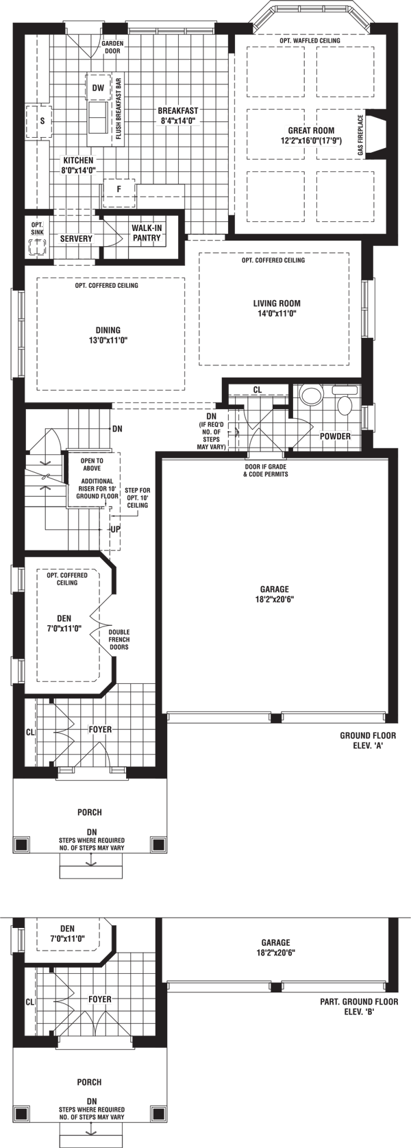 Materials, specifications, and floor plans are subject to change without notice. All house renderings are artist’s conceptions. All floor plans are approximate dimensions. Actual usable floor space may vary from the stated floor area. Number of steps on front elevation may vary depending on grade conditions. E. & O.E