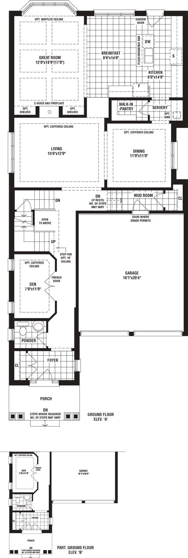 Materials, specifications, and floor plans are subject to change without notice. All house renderings are artist’s conceptions. All floor plans are approximate dimensions. Actual usable floor space may vary from the stated floor area. Number of steps on front elevation may vary depending on grade conditions. E. & O.E