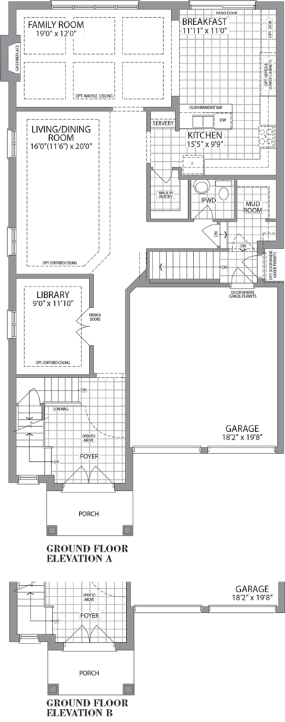 Materials, specifications, and floor plans are subject to change without notice. All house renderings are artist’s conceptions. All floor plans are approximate dimensions. Actual usable floor space may vary from the stated floor area. Number of steps on front elevation may vary depending on grade conditions. E. & O.E