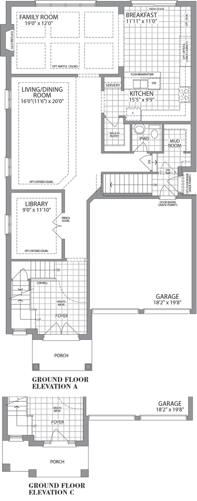 Materials, specifications, and floor plans are subject to change without notice. All house renderings are artist’s conceptions. All floor plans are approximate dimensions. Actual usable floor space may vary from the stated floor area. Number of steps on front elevation may vary depending on grade conditions. E. & O.E